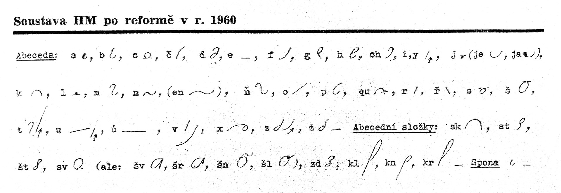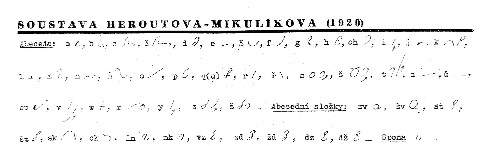 Původní podoba Herout-Mikulíkovy soustavy, která byla oficiálně zavedena v r. 1921. Je vidět, že se toho změnilo jen velmi málo. Vypustily se především duplicitní tvary některých písmen, a provedly se nějaké drobné změny v pravidlech psaní: